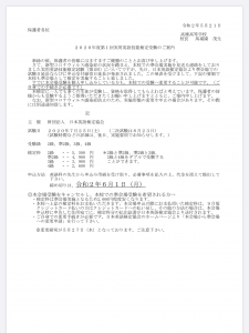 第1回実用英語技能検定受験の案内(訂正) 第1回実用英語技能検定について、下記の通り変更いたします。 すでに申し込んでいる生徒が変更する場合は、下記の文書をよく読んで変更申請をして下さい。 2020年05月21日(木) « 分散登校・通常授業再開についてのお知らせ 学校再開に向けた配布文書のお知らせ » タグ: お知らせ